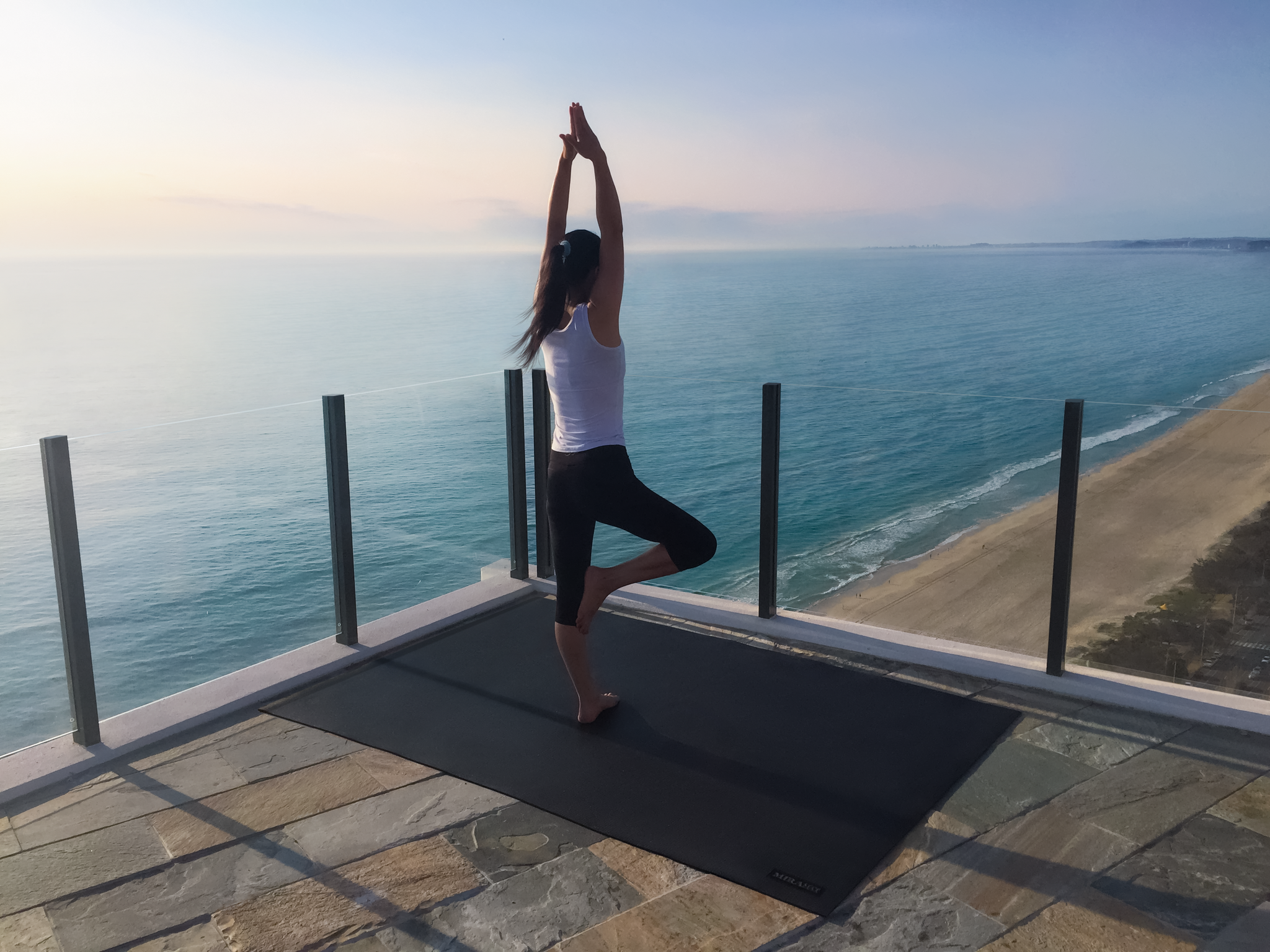 Miramat is huge. It will turn any room into your own private yoga sanctuary or home gym.